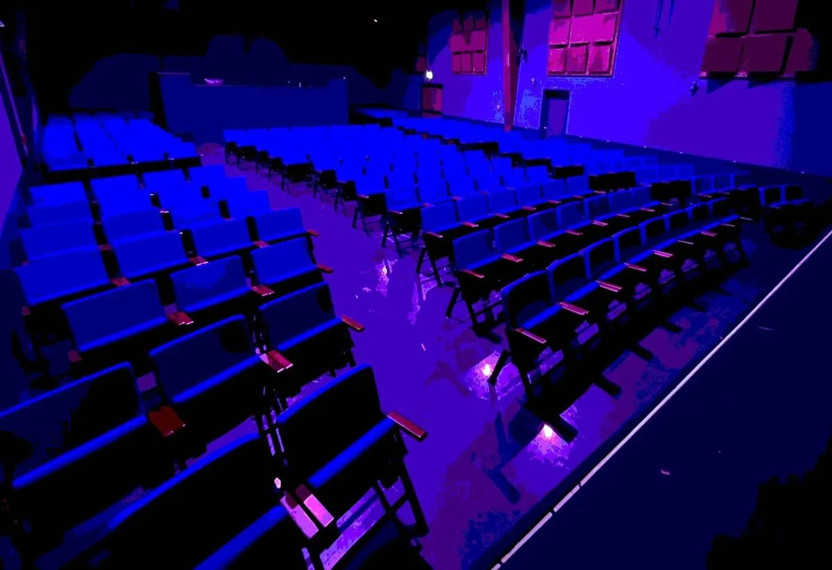 Audience seating and stage with a Steinway grand piano at The Polaris Theatre